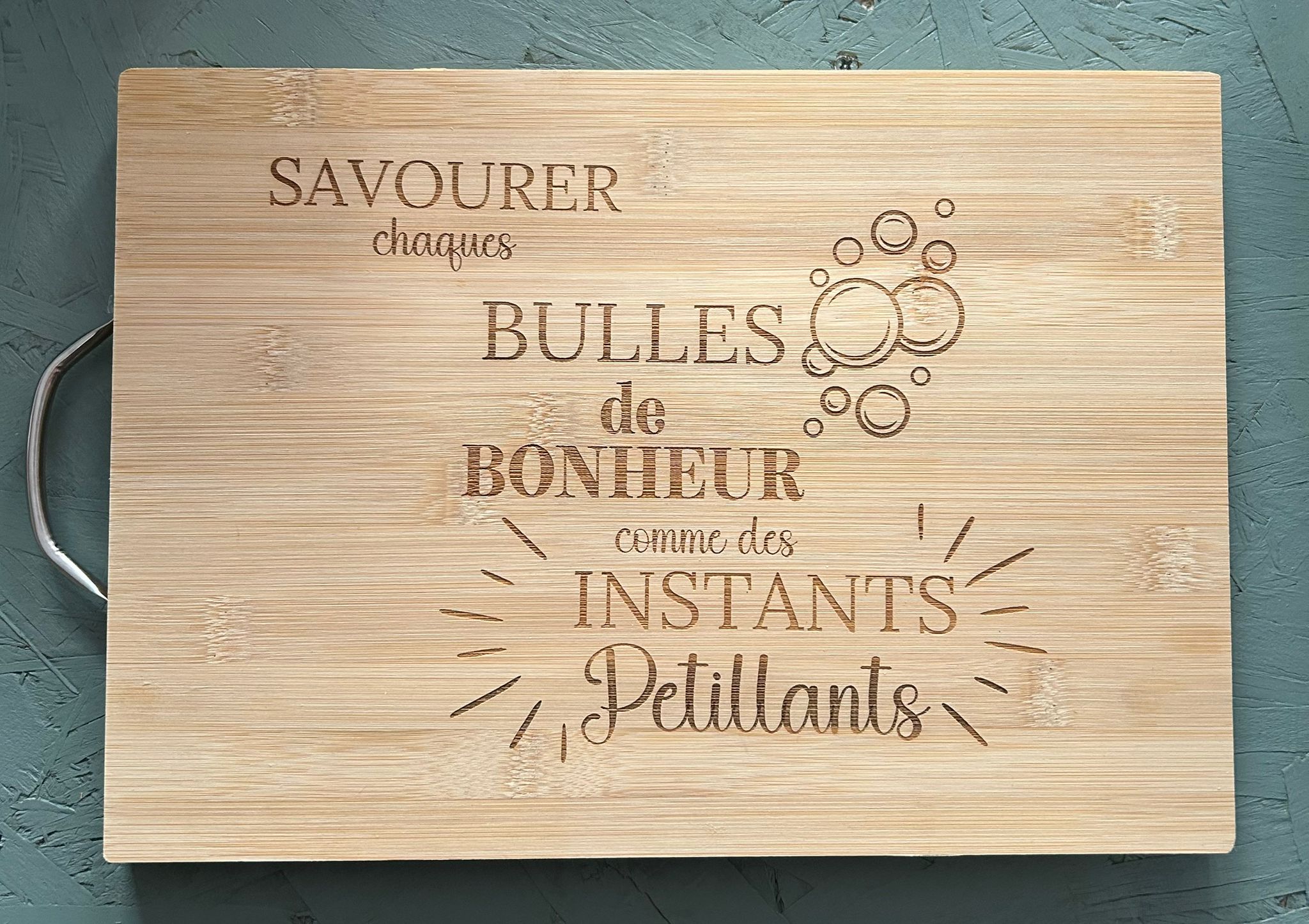 Planche à découper « Savourer chaque bulles de bonheur, comme des instants pétillants »
